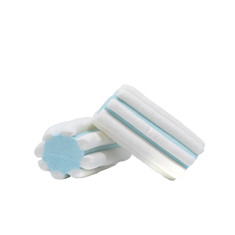 Soft and colorful marshmallows, made with extrusion technique for a light and pleasantly fluffy texture.